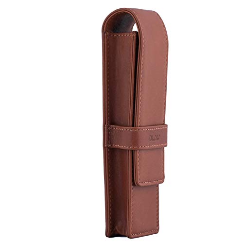 DiLoro Doppel-Federmäppchen aus Leder für Zwei Füllfederhalter, Kugelschreiber, Tintenroller und Bleistifte (Bugatti Tan)