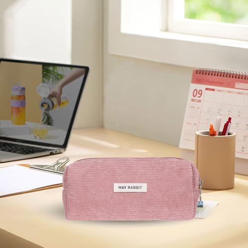 DONQTWAY Federmäppchen Cord Stoff, Mäppchen Rosa, Cord Stiftemäppchen, Mäppchen Teenager, Stiftetasche für Mädchen und Jungs, Schlamppermäppchen, Pencil Case Aesthetic, Federtasche für Schule, Büro
