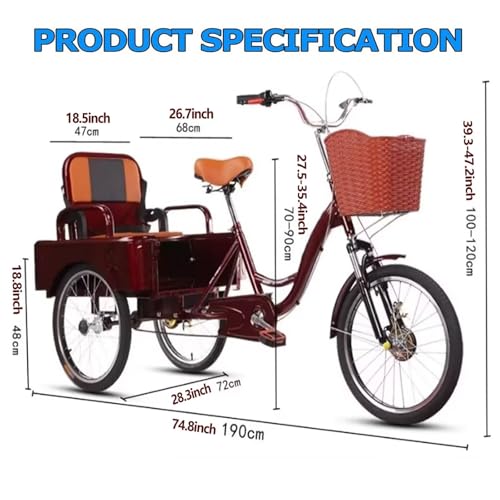 Das 20-Zoll-Dreirad für Erwachsene ist mit einem robusten Rahmen aus Kohlenstoffstahl und einer stabilen Dreieckskonstruktion ausgestattet und eignet sich daher für Männer und Frauen mit einer Körpergröße von 1,57 m bis 1,75 m. Die maximale Tragfähigkeit beträgt 200 kg (inkl. Fahrer und Gepäck).