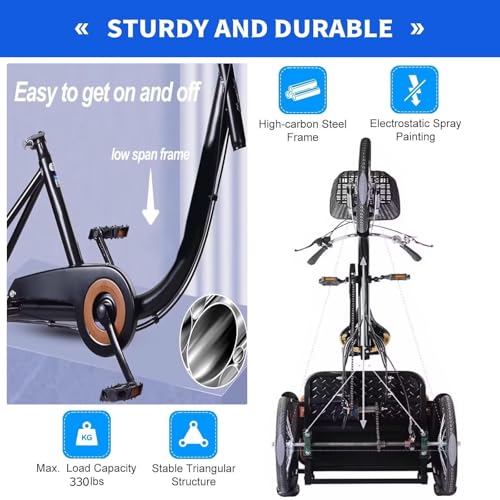 • Geeignet für: Das 20-Zoll-Dreirad für Erwachsene ist aus robustem Kohlenstoffstahl gefertigt und eignet sich für Männer und Frauen mit einer Körpergröße von 1,57 m bis 1,88 m. Die maximale Traglast beträgt 150 kg.