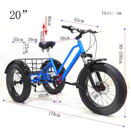 • ➤【VIEL STAURAUM UND HOHE LASTKAPAZITÄT】Dieses 20-Zoll-Dreirad ist äußerst praktisch und verfügt über einen Gepäckkorb hinten, in dem Sie alles Notwendige verstauen können. Mit seinem robusten Rahmen aus hochfestem Kohlenstoffstahl trägt es bis zu 200 kg und ist somit ein zuverlässiger Begleiter beim Einkaufen und Transportieren Ihrer Sachen.