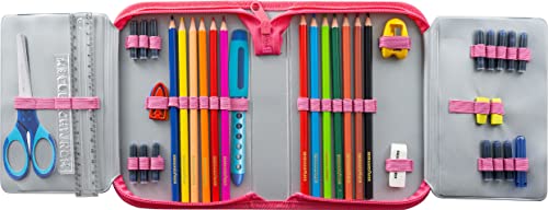 • Ordentlich und organisiert – 2 aufklappbare Flügel mit je einem Steckfach für Stundenpläne und Notizen, Schlaufen für Zeichengeräte und Schere sowie 16 Steckplätze für kleine Gegenstände, Hauptfach mit 23 Schlaufen für Stifte, Füller und Kleinkram