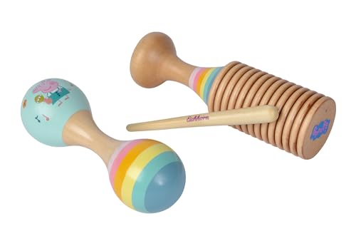 • Peppa Pig, Set mit Maraca und Ratsche: Mit dem 3-teiligen Peppa Pig Musik Set können Kinder mit Ratsche und Maraca erstmals musikalisch aktiv werden.