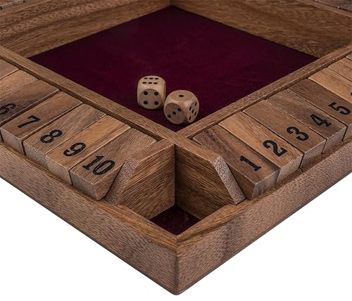 Engelhart – 300406 – Shut The Box für 4 Spieler – Holzbox mit Filz – 8 Holz-Würfel – Traditionelles Gesellschaftsspiel – Maße 29x29x3,5 cm – Würfelspiel