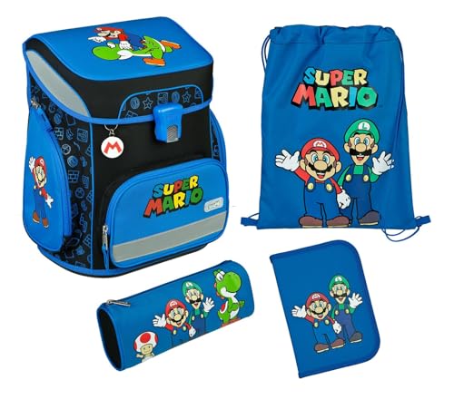 Jukibole Reflektoren Schulranzen Kinder – 36 Stück Stern Sicherheits...Scooli EasyFit Schulranzen-Set 5-teilig Super Mario II