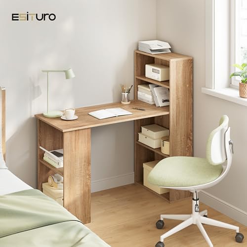 eSituro Schreibtisch mit Stauraum & Bücherregal, Computertisch Homeoffice, 120x55x120 cm, Bürotisch fürs Arbeitszimmer Schlafzimmer,Hellbraun