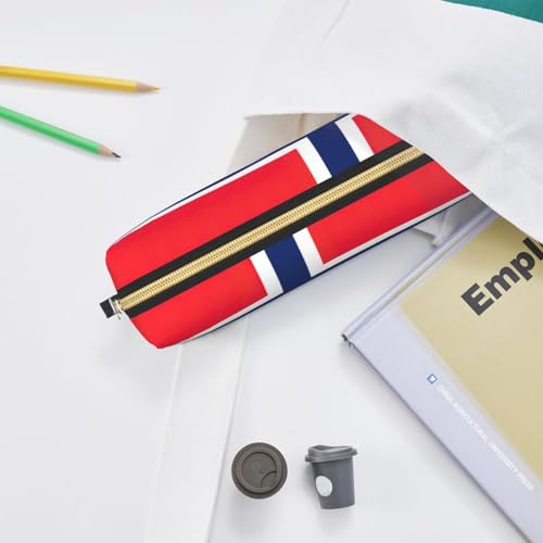 EWQrtyy Federmäppchen mit norwegischer Flagge, Leder, mit Reißverschluss, Zubehörhalter, Schreibwaren-Tasche, Geschenk für den Schulanfang, gold, Einheitsgröße, Kosmetiktasche