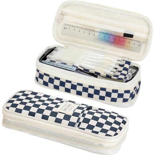 • JunD Großes Fassungsvermögen Federmäppchen ausziehbar – Mäppchen & Stifteetui für Mädchen & Teenager – Organizer mit Mesh-Fächern und Stifthalter – Schulmäppchen Back to School Aesthetic,Blau