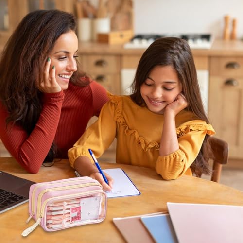 • BERRYRIZZ Großes Einhorn-Federmäppchen, Stifteetui, Organizer, Segeltuch, Federmäppchen mit Griff, Schulbedarf für Teenager, Mädchen, Rosa