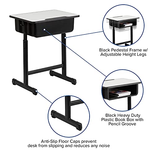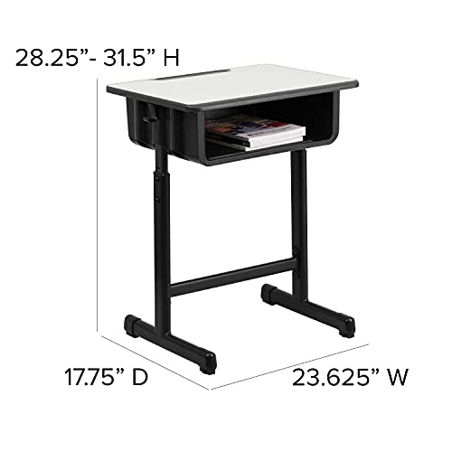 Flash Furniture Schreibtisch für Klassenzimmer – Höhenverstellbarer Schüler-Einzeltisch von Grundschule bis Abschluss – Pflegeleichter Kindertisch mit Ablagefach – Schwarz/Weiß