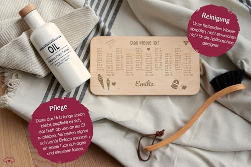 Frühstücksbrettchen Holz Natur – Holzbrettchen mit Kleinem 1×1 | Geschenkidee zur Einschulung | Mathe Lernbrett Schulanfang | Frühstücksbrett für Kinder – 22×12 – Holz – multiplikationsbrett