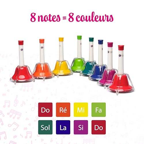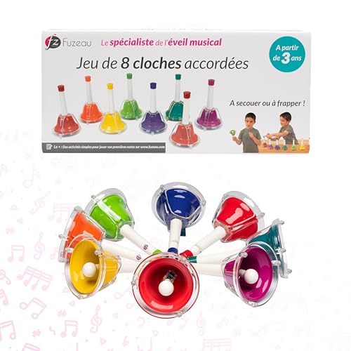 Fuzeau – 8 bunte Musikglocken für Kinder – ab 3 Jahren – Musikinstrument, pädagogisch, spielerisch zum Erwachen der Musik – Erste Melodien – zum Schütteln oder Schlagen – Ref 70608