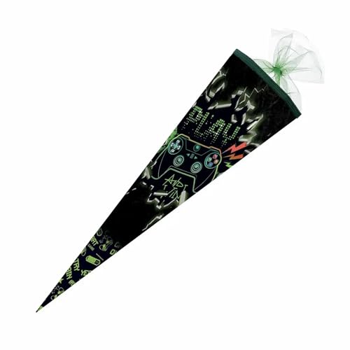 • + Federmappe gefüllt + Turnbeutel ca. 40 x 30 cm gross + Malschürze + Brotdose + Minecraft Trinkflasche + Sporttasche ca. 35 x 23 cm gross + Schultüte 85 cm lang , 6 eckig, mit Tüll