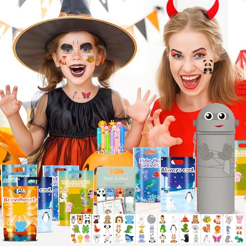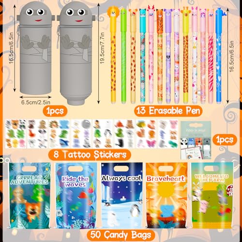 GDFJBG 2-in-1 Weiche Federmäppchen – Kawaii Halloween Federmäppchen Set, Mumie + 13 löschbare Stifte + Lesezeichen + 12temporäres Tattoo + 5 Verschiedene Süßigkeitentüten, mäppchen, Silikontasche