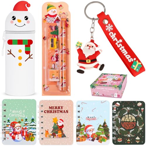 GDFJBG Weihnachts 2-in-1 Silikon Federmäppchen Set, Schreibwaren Set, Haftnotizen, Mini Notizblöcke, Magnetisches Lesezeichen, Weihnachten Party Geschenke Bag Fillers