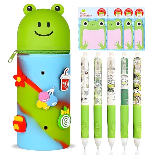 GDFJBG Weihnachts 2-in-1 Silikon Federmäppchen Set, Schreibwaren Set, Radiergummi,...SYTTNUM Weiches Silikonetui für Bleistifte, Frosch Kawaii Federmäppchen 2...