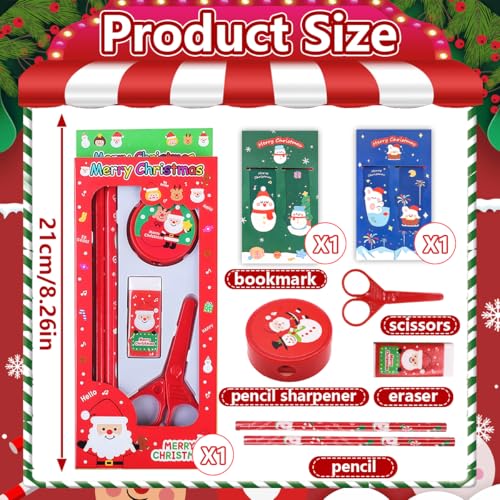 GDFJBG Weihnachts 2-in-1 Silikon Federmäppchen Set, Schreibwaren Set, Radiergummi, Anspitzer, Mini Notizblöcke, Bleistift, Kleinigkeiten, Weihnachten Party Geschenke Bag Fillers (9)