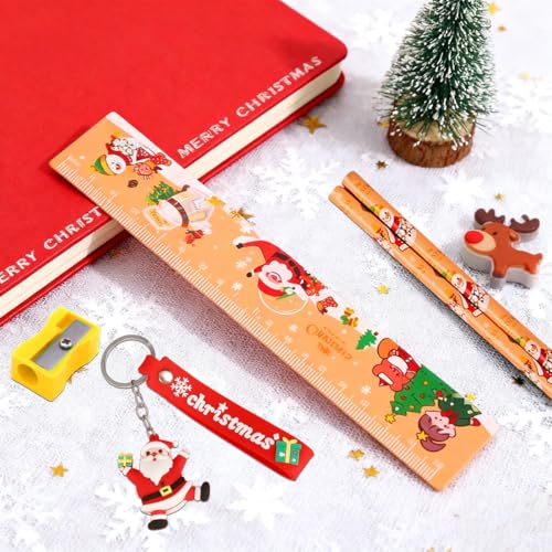 GDFJBG Weihnachts 2-in-1 Silikon Federmäppchen Set, Schreibwaren Set, Radiergummi, Anspitzer, Mini Notizblöcke, Bleistift, Kleinigkeiten, Weihnachten Party Geschenke Bag Fillers