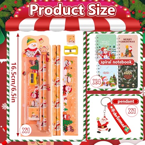 • 【Weihnachts Schreibwaren Set】Das Set enthält eine Silikon-Stifttasche, 1 x 5-teilige Schreibsets – bestehend aus 2 Bleistiften, 4 Mini-Notizbüchern und einem Weihnachtsmann-Schlüsselanhänger.