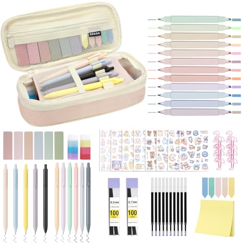 Obcarn 66 stück Federmäppchen Satz, 12 Textmarker Pastell 5 Kugelschreiber...ZIPIT Half & Half Federmäppchen | Großes Mäppchen für Schule und Büro...