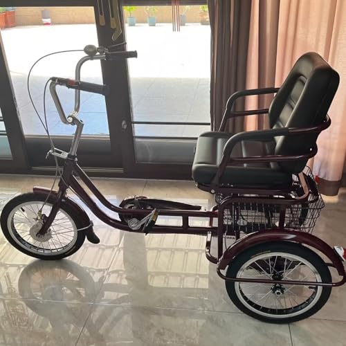 Generisch 16-Zoll-Rikscha-Dreirad für Erwachsene mit Pedalen, Mobilitätsdreirad für Senioren, bequemer Schaumstoffsitz mit Armlehne, 3-rädriges Cruiser-Dreirad, Speichenräder mit Luftreifen