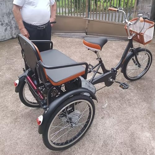 Generisch 3-Rad-Fahrrad für Senioren und Erwachsene, großes Rikscha-Dreirad mit Pedalen, Tandem-Dreirad mit Rücksitz, Cruiser-Fahrrad mit Doppelbremsen, hydraulische Vordergabel