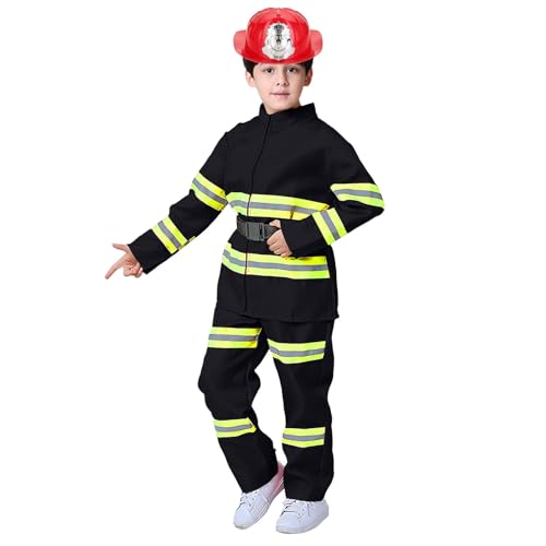 Generisch Feuerwehr Kostüm Kinder Set Feuerwehrkostüm 8-teiliges Feuerwehrmann Kostüm Jungen Feuerwehr Rollenspiel Set Kinderkostüm Faschingskostüm Für Cosplay,Karneval, Fasching, Mottoparty
