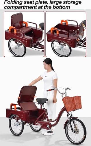 Generisch Großes Rikscha-Dreirad mit Pedalen, Mobilitäts-Dreirad mit klappbarem Rücksitz