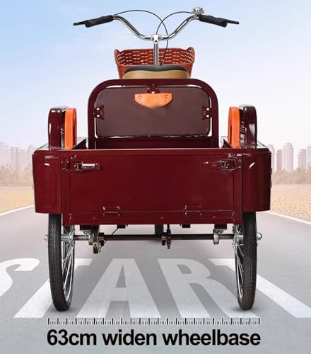 • 【Fahrrad mit 3 Rädern】 Der Rahmen aus Kohlenstoffstahl kann eine maximale Last von 150 kg tragen; der Rahmen mit niedriger Spannweite eignet sich zum Auf- und Absteigen vom Dreirad. Luftbereifte, rutschfeste Speichenräder/integrierte Räder, geeignet zum Fahren auf verschiedenen Straßenoberflächen.