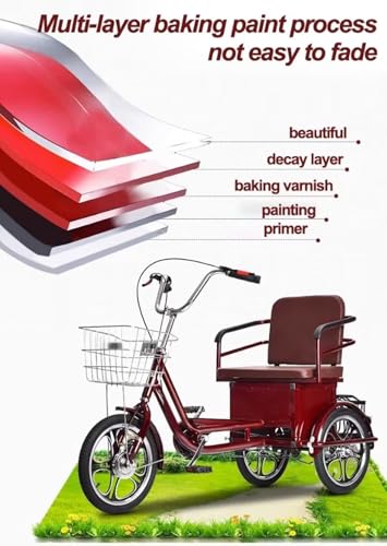 • Fahrrad mit 3 Rädern: Der Stahlrahmen mit hohem Kohlenstoffgehalt kann einer maximalen Belastung von 150 kg standhalten, geringer Rahmen, geeignet zum Ein- und Aussteigen des Dreirads. Integrierte Räder mit rutschfesten Reifen, geeignet für das Fahren auf verschiedenen Straßenflächen.