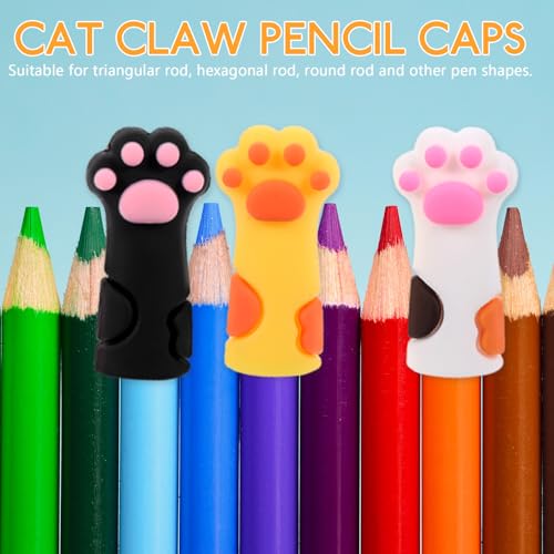GLEAVI Silikon Stiftaufsätze Katzenpfoten 6 Stück Bleistifthüllen für Grundschüler und Kreative Schulmaterialien Stiftehüllen