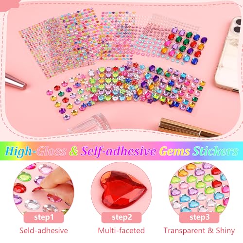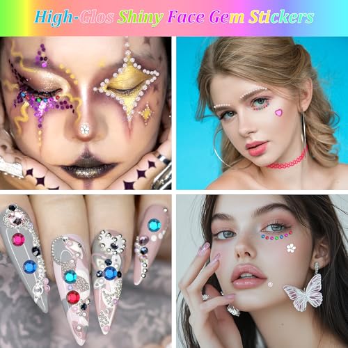 Glitzersteine Selbstklebend, 14 Blätter Bunt Strasssteine Gesicht, 3-14mm Glitzersteine zum Basteln Verschiedene Formen Glitzer Sticker für Kinder Handwerke Fotorahmen Grußkarten