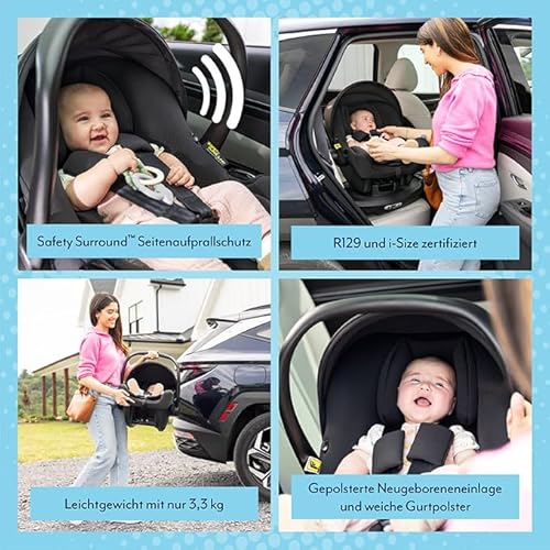 • ECHTES LEICHTGEWICHT: Die mit nur 3,3 kg besonders leichte Babyschale macht eure ersten Familienausflüge zum Kinderspiel.