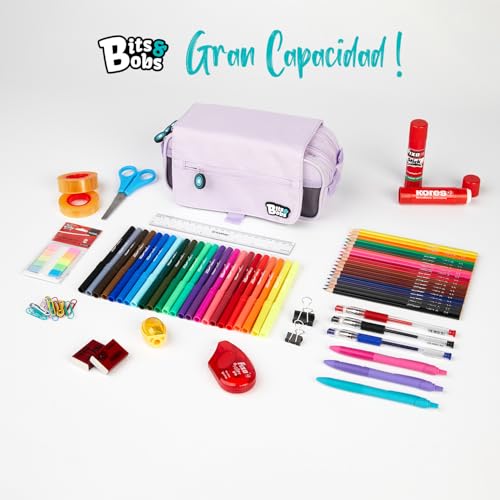 Grafoplás | Federmäppchen mit drei Fächern mit Klappe | Lavendel | Bits & Bobs | Leuchtende Farben | 23 x 10 x 10 cm | Enthält Kalender und ID-Bereich