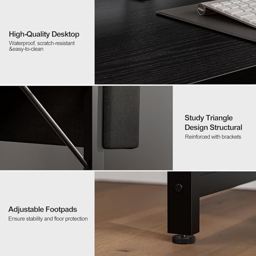• Stabile und langlebige Konstruktion: Hergestellt mit einem verstärkten Metallrahmen und einer hochwertigen MDF-Platte, sorgt dieser Schreibtisch für Stabilität, Kratzfestigkeit und Wasserbeständigkeit. Die verstellbaren rutschfesten Fußpolster schützen Böden vor Kratzern und bieten gleichzeitig hervorragende Unterstützung auf unebenen Oberflächen.