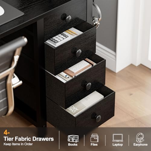 • Reichlich Stauraum mit 4 Stoffschubladen: Der Grandder Schreibtisch verfügt über 4 geräumige ausziehbare Stoffschubladen, die viel Stauraum für Bürobedarf, Bücher, Kosmetik und Accessoires bieten. Halten Sie Ihren Arbeitsplatz ordentlich und aufgeräumt mit diesen einfach zu bedienenden, staubabweisenden Aufbewahrungslösungen.