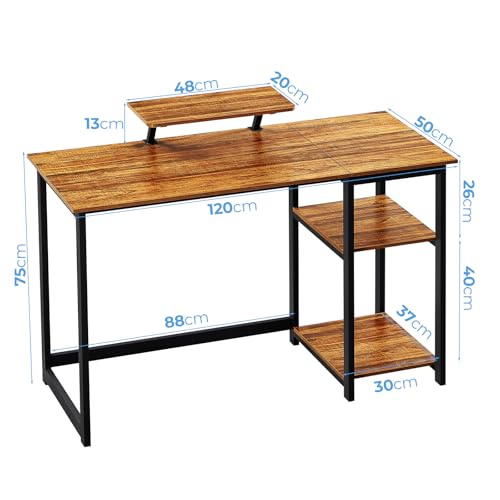 GreenForest Schreibtisch 120cm, Bürotisch Tisch mit Stauraum, Computertisch PC Schreibtisch mit Monitorständer für Home Office, Walnuss