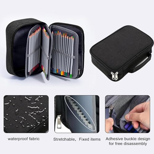 • FINPAC Federmäppchen, großes mehrlagiges Aquarellstifte-Etui mit Reißverschluss-Vordertasche, Organizer für 100 Buntstifte/65 Gelstifte/Marker, für Künstler, Maler, Planer