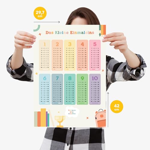 • 1×1 LERNEN LEICHT GEMACHT – Mit diesem bunten DIN A3 Lernposter wird das Einmaleins zum Kinderspiel. Die kleine Affirmation "Ich kann alles" stärkt beim Lernen das Selbstvertrauen und unterstützt somit den Lernferfolg.