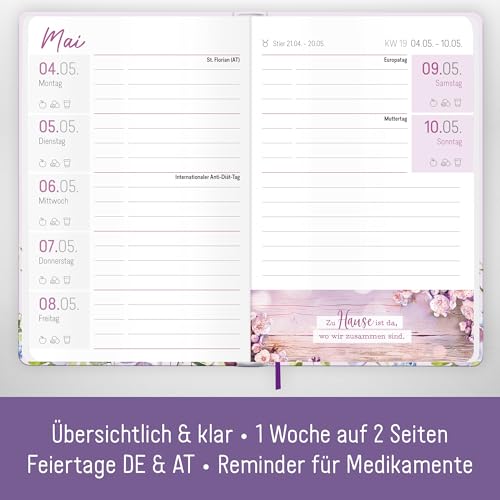 • EIN ZUVERLÄSSIGER BEGLEITER – Mit nützlichen Extras: Notruf- & Service-Nummern, Arzt- & Kontrolltermine, Verträge & Abos, wichtige Aufgaben als Quartalsüberblick, Listen mit Anwendungsideen, Adressteil, Notizseiten u. v. m.