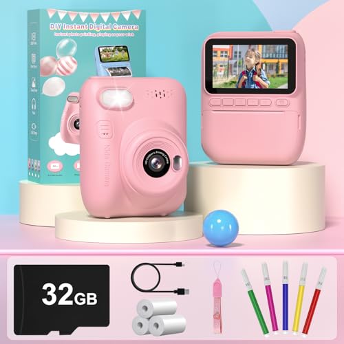 Kinder Kamera 48MP Doppellinse 1080P Kleinkind Kamera für Kinder, Digitale...Sofortbildkamera, Kinderkamera mit 32GB Karte & 3 Rollen Druckpapier, Sofortbildkamera...