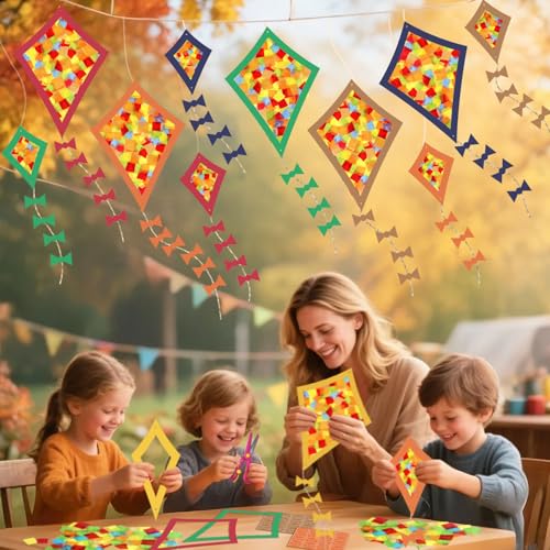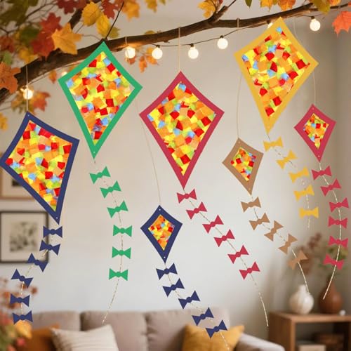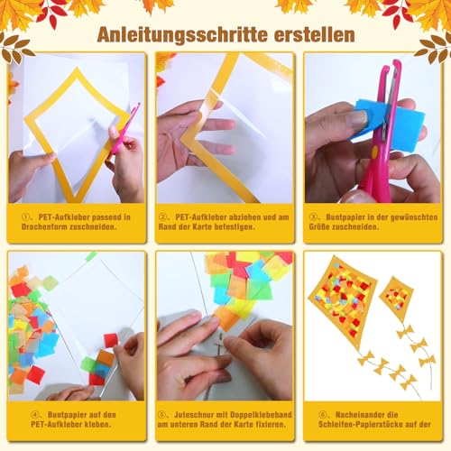 Herbstbasteln für kinder, Fensterbilder Herbst Basteln, Herbstdeko Papierkite, DIY Herbst Bastelset, Herbstbasteln mit 12 Papierdrachen, Tonkarton und Transparentpapier für Kinder Herbst Geschenk