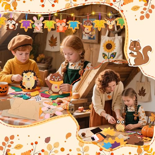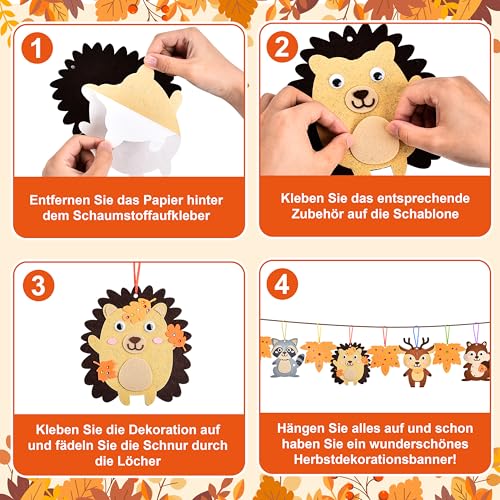 - 53 Stück Herbst Bastelsets Kinder Set mit LED-Licht: Enthält 8 verschiedene designs wie eule, Braunbär, Igel, Kaninchen, Waschbär, eichhörnchen, fuchs und hirsch, 14 herbst blätter, 15 bunte bänder zum aufhängen der fertigen tiere, 14 augäpfel, seil, kleines zubehör Tiere-Körper und -Gesicht, aufkleber. Dieses herbst bastelset ist perfekt, damit sie Ihre eigenen herbst alleine oder zusammen mit freunden und familie beginnen und personalisieren können!