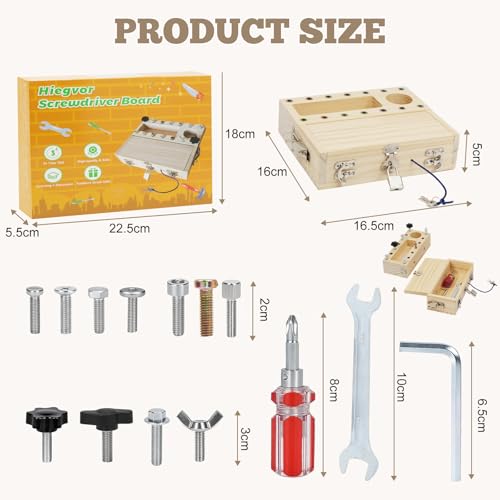 Hiegvor Montessori Spielzeug ab 3 4 5 Jahre, Motorikspielzeug Holzspielzeug Schraubendreher Busy Board mit Schlüssel und Schloss, Lernspielzeug Geschenk für Jungen Mädchen