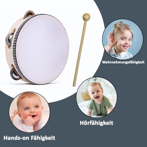 Dieses Set enthält 2 hochwertige Handtrommeln und 2 Schlägel, ideal für Kinder im Alter von 3-6 Jahren; Die Trommeln sind aus robustem Holz gefertigt und bieten einen klaren, angenehmen Klang; Perfekt für den Einsatz in Musikunterricht und zu Hause