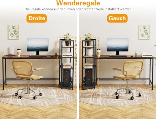 • 【Großraum- und 4-streizendes Regal】 Länge: 160 cm, Breite: 60cm Dimension kann Ihren Laptop, PC, Tastatur, Schreibtischzubehör leicht aufnehmen. was für Studium und Büro passt. Großer Stauraum mit einem 4-stufigen Regalen, kann mehr Platz für Bücher, Topfpflanzen, Aufbewahrungsboxen usw. haben und Ihren Abruf-Büro-Arbeitsbereich voll nutzen! Das Regal kann auf der rechten oder linken Seite fixiert werden, wie Sie es benötigen.