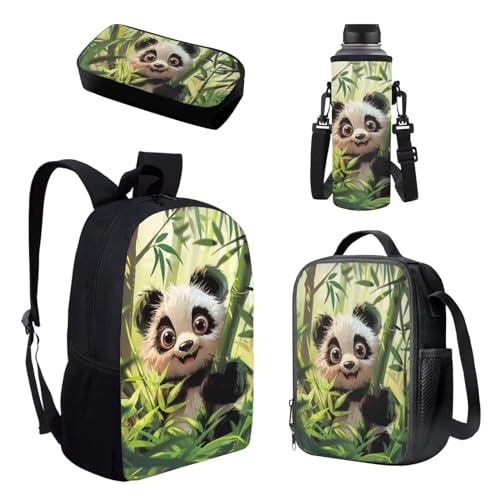 Howilath 43,2 cm Fußball-Basketball-Rucksack-Set für Teenager, Mädchen, Schultaschen, Schultertasche, Büchertasche, Lunchbox, Federmäppchen, Flaschentasche, 4-in-1, Panda-Grün, 17 inch (4PCS Set
