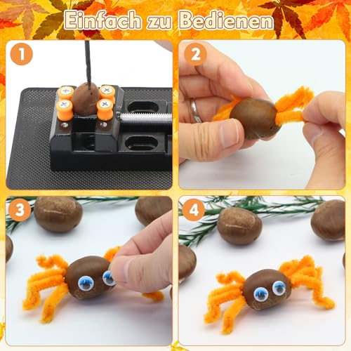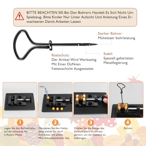 • HERBSTDEKORATION GESCHENKE:Kastanienbohrer Set mit Kastanienhalter, Kastanien Bastelset Kinder, Kastanienset zum Basteln Mit Kastanien, Herbst Kastanienmännchen DIY Set,5 Bohrer Kastanien, Mit Diy Bastel Zubehör,Herbstdekoration Geschenke für Hobbyschneider