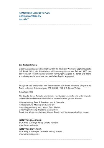 - Iphigenie auf Tauris von Johann Wolfgang von Goethe (Textausgabe): Hamburger Lesehefte Plus Königs Materialien