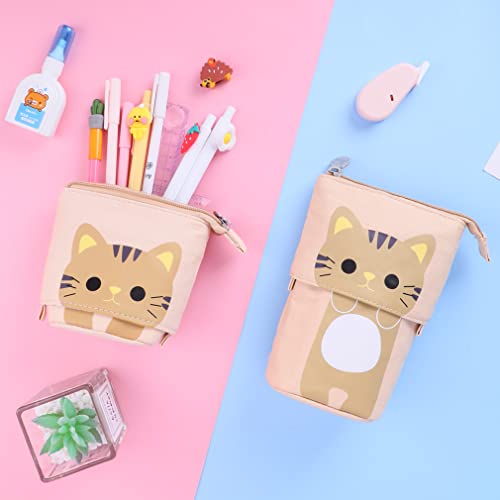 iSuperb Leinwand und PU Verwandeln Mäppchen Etuischule Täschchen Federmäppchen Kosmetiktasche Organisator Süße Kätzchen in 3 Farbe 19 x 12.5 x 7.5cm (KhakiGelb)